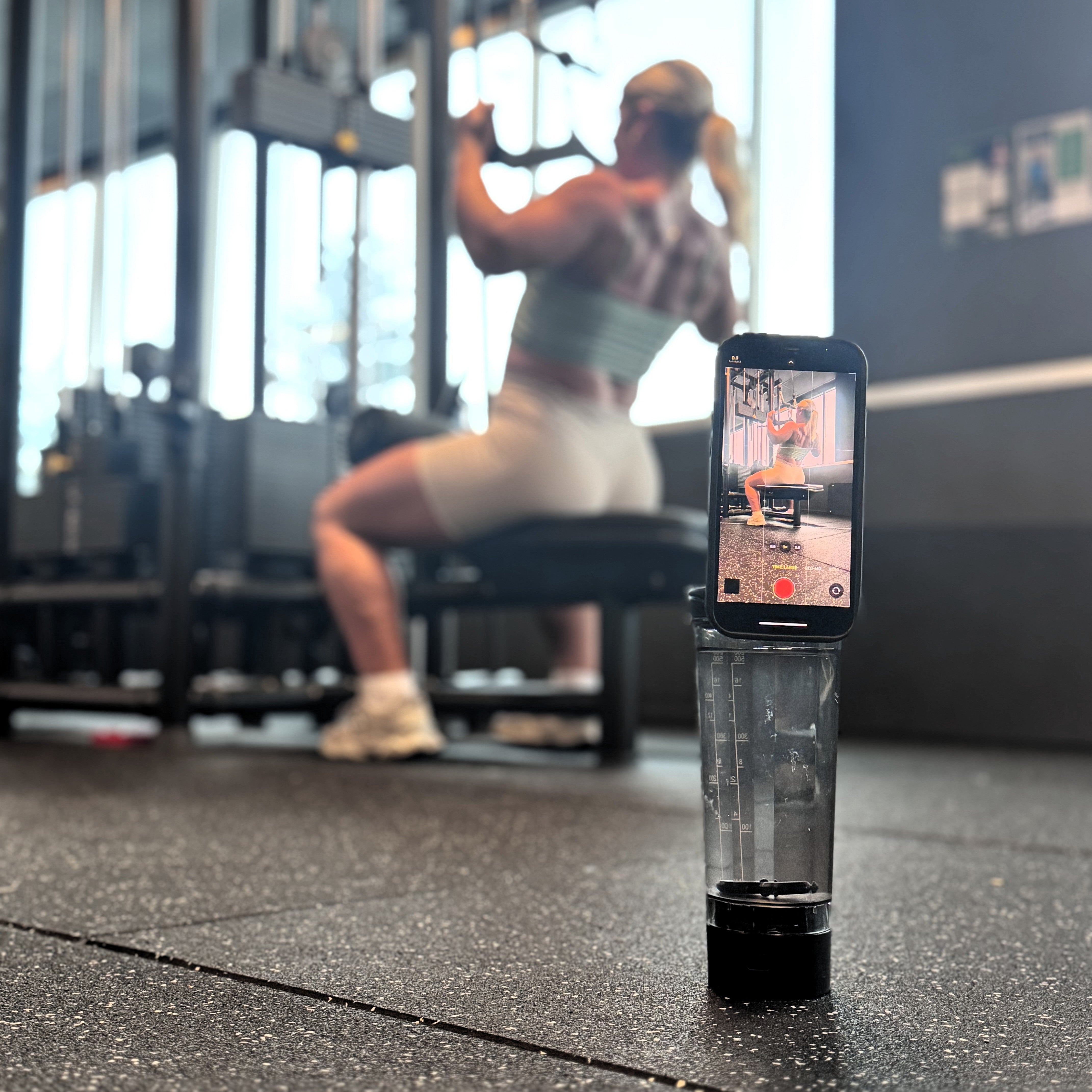 Record your workouts Hands-free with a sleek built-in phone holder.